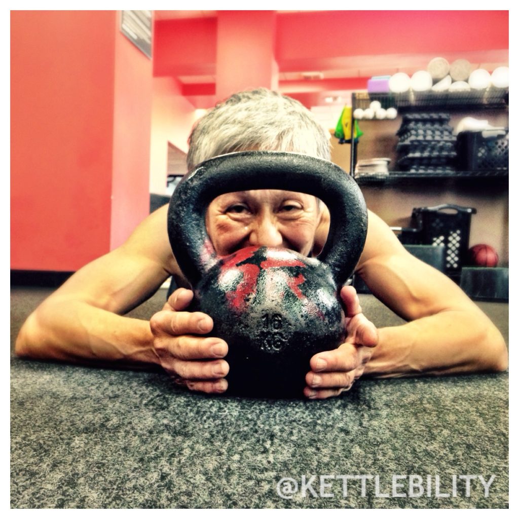 She walked in Kettlebility’s door and started training with Kettlebility owner Andrea U-Shi Chang. Kettlebility meets each student/member/client where they are and works to restore healthy movement and build strength that is durable so that at 80 they can keep doing the things they love. Working with Madelon weekly, and gradually introducing her to Kettlebility’s group classes, within one year, Madelon’s bone density was equal to that of a young woman.
