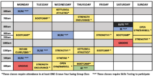 1) In the schedule below, classes close for registration 60 minutes before start time.